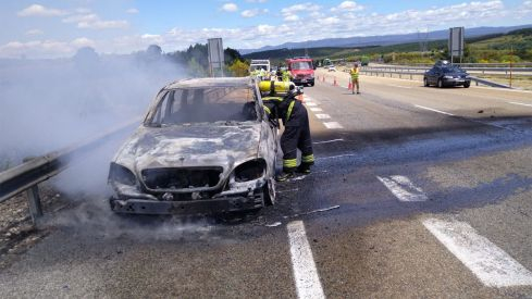 Afortunadamente, los tres ocupantes del vehículo huyeron del vehículo tras aparcarlo en el arcén al ver salir humo del capó, por lo que no hay que lamentar dalos personales.