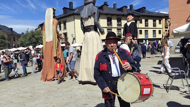 El veterano tamboritero Fernando Fernández acompaña a los gigantes y cabezudos este miércoles 7, a las 11 de la mañana, en el recorrido que llevarán a cabo por las calles de Ponferrada, partiendo del zaguán del Ayuntamiento, para recuperar una tradición que busca su espacio propio en el programa festivo de la capital berciana.