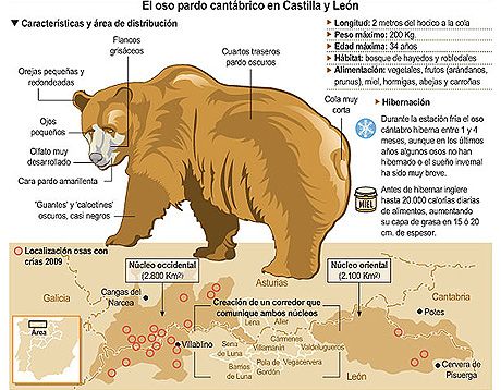 El oso pardo continúa ampliando las que hasta ahora eran sus áreas de asentamiento habitual en las comunidades donde tiene presencia, es decir, Castilla y León, Asturias y Cantabria, y se está dejando notar en otros territorios que hasta ahora no eran habituales. Además, según el último censo, la población osera supera en la Cordillera Cantábrica los 200 ejemplares, lo que supone que el número de animales se ha triplicado en los últimos años.