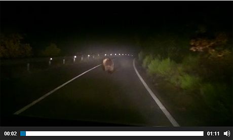 Según narra la artífice de las imágenes, eran las 00.55 cuando regresaba a su casa, en Colinas del Campo, "y el animal, al ver las luces del vehículo, fue cuando decidió emprender la carrera". Ellos no fueron los únicos que visualizaron al oso esa noche por la zona, dado que detrás circulaban más vehículos que también se toparon con el ejemplar. No obstante, sólo Olga tuvo la suerte de poder captarlo tan claro.