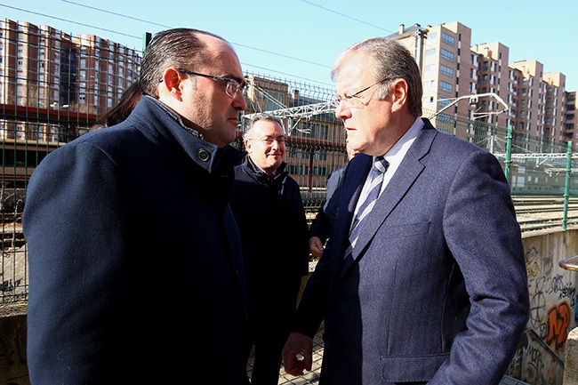 El portavoz del PP en León, Antonio Silván (D), junto a su homólogo en Ponferrada, Marco Morala (I), durante su comparecencia de este viernes después de tratar asuntos de infraestructuras que afectan a ambos municipios (César Sánchez / ICAL)Los portavoces del PP en León y Ponferrada, Antonio Silván y Marco Morala, respectivamente, reclamaron este viernes desde la capital berciana una mejora de las infraestructuras viarias y ferroviarias que unen a ambas ciudades. Con la estación de ferrocarril a sus espaldas, los representantes de los ‘populares’ en las dos mayores ciudades de la provincia reivindicaron que el Gobierno atienda las necesidades del territorio y dé un “impulso definitivo” a proyectos como la autovía A-76, entre Ponferrada y Orense.
