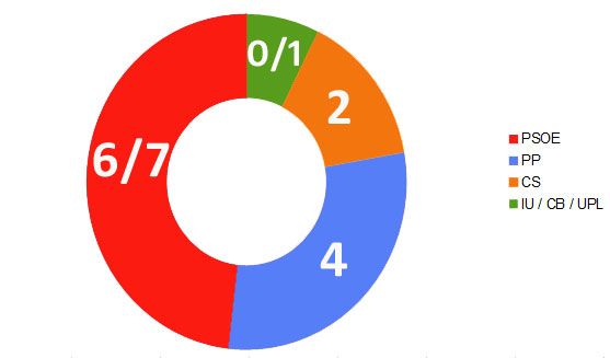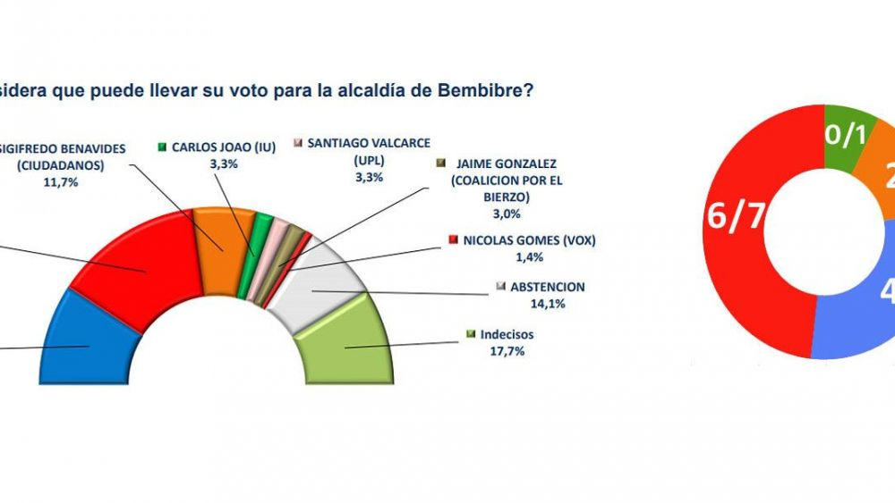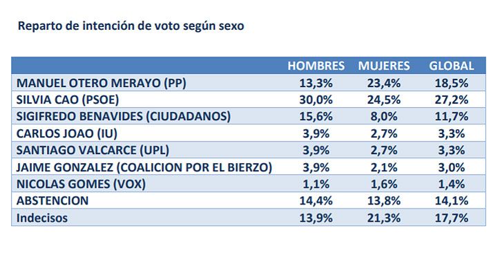 En base a estos datos, desechados los indecisos, resulta una mayoría para el PSOE, que según el movimiento de voto de los indecisos puede moverse a la mayoría absoluta o quedarse en mayoría simple y que entre un cuarto partido en el arco municipal (tanto IU como Coalición por El Bierzo y UPL, por este orden, tienen opción). Si entra el cuarto partido, tendría mayoría simple. Al PP le quedaría una opción limitada de Gobernar con Ciudadanos (su candidato Sigifredo Benavides abandonó el PP por fuertes discrepancias con el líder de los Populares, Otero Merayo). Si entra IU habría mayoría de Izquierdas y los cuerdos PSOE y Ciudadanos también permitirían un Gobierno estable para los Socialistas.