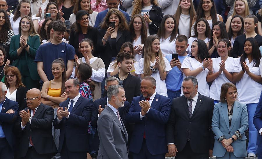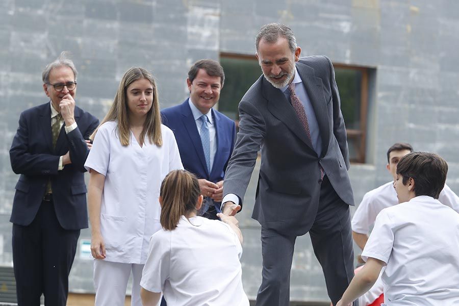 Así, el monarca saludaba al alcalde de la ciudad, Olegario Ramón, al presidente de las cortes de Castilla y León, Carlos Pollán, al presidente de la Junta, Alfonso Fernández Mañueco, a la subdelegada del gobierno en Castilla y León, Virginia Barcones, y al rector de la Universidad de León, Juan Francisco García Marín.