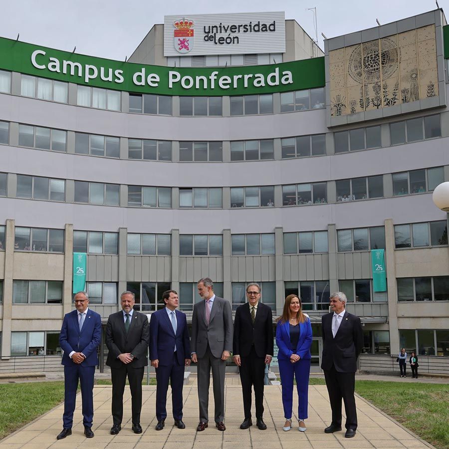 El rey Felipe VI preside el acto de clausura del XXV aniversario del Campus de Ponferrada de la ULEEl rey Felipe VI visitó esta mañana el Campus de Ponferrada para poner punto y final a los actos del 25 aniversario de la institución. Llegaba a las 11:09 horas escoltado y con unos minutos de retraso. En la puerta del Campus le recibían varias autoridades autonómicas y locales.