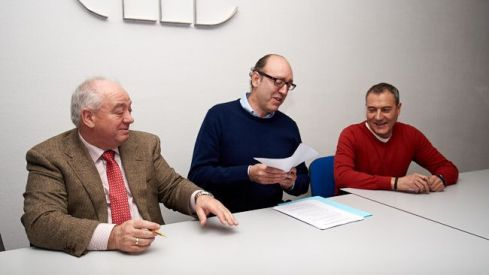 El representante de APICAL, Eliseo López; el responsable del sector minero de UGT Castilla y León, Jorge Díez; y el responsable de los servicios jurídicos de al FELE, Hermenegildo Fernández, firman el nuevo convenio del sector de la pizarra en Castilla y León / Fotos: J. Ángel Alonso (InfoBierzo)Los trabajadores del sector de la pizarra de Castilla y León han firmado el nuevo convenio colectivo con los sindicatos y las empresas este martes. Se trata de un acuerdo por vigencia de tres años, de 2019 a 2021, que se sustenta en tres pilares fundamentales, el avance salarial, social y la mejora de las condiciones de seguridad.