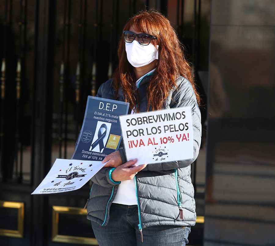 La portavoz de la protesta, Asunción Plaza, advirtió que a consecuencia de la crisis derivada por la pandemia de COVID-19 abocará al cierre de un 60% de salones. "Todos conocemos al compañero que está bajando la verja", lamentó.