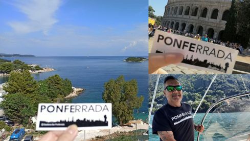 El skyline de Ponferrada, una idea llevada a cabo por la Destilería Bar, situado en la Zona Alta de la capital berciana, ha viajado durante meses alrededor del mundo. Plasmado en una pegatina o en una camiseta, no importa. Lo importante es que edificaciones emblemáticas de la ciudad como la Basílica de la Encina, el Puente del Centenario, el Castillo de los Templarios o la Torre de la Rosaleda, han estado presentes en lugares como la Estatua de la Libertad en Nueva York, La Habana (Cuba), el Castillo de Osaka en Japón, Punta Cana, o las Islas Phi Phi en Tailandia.