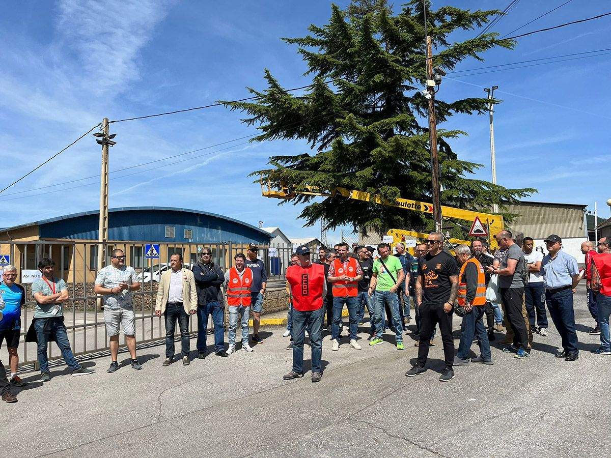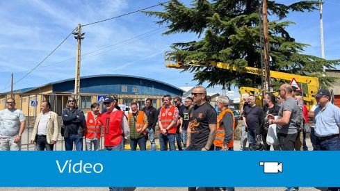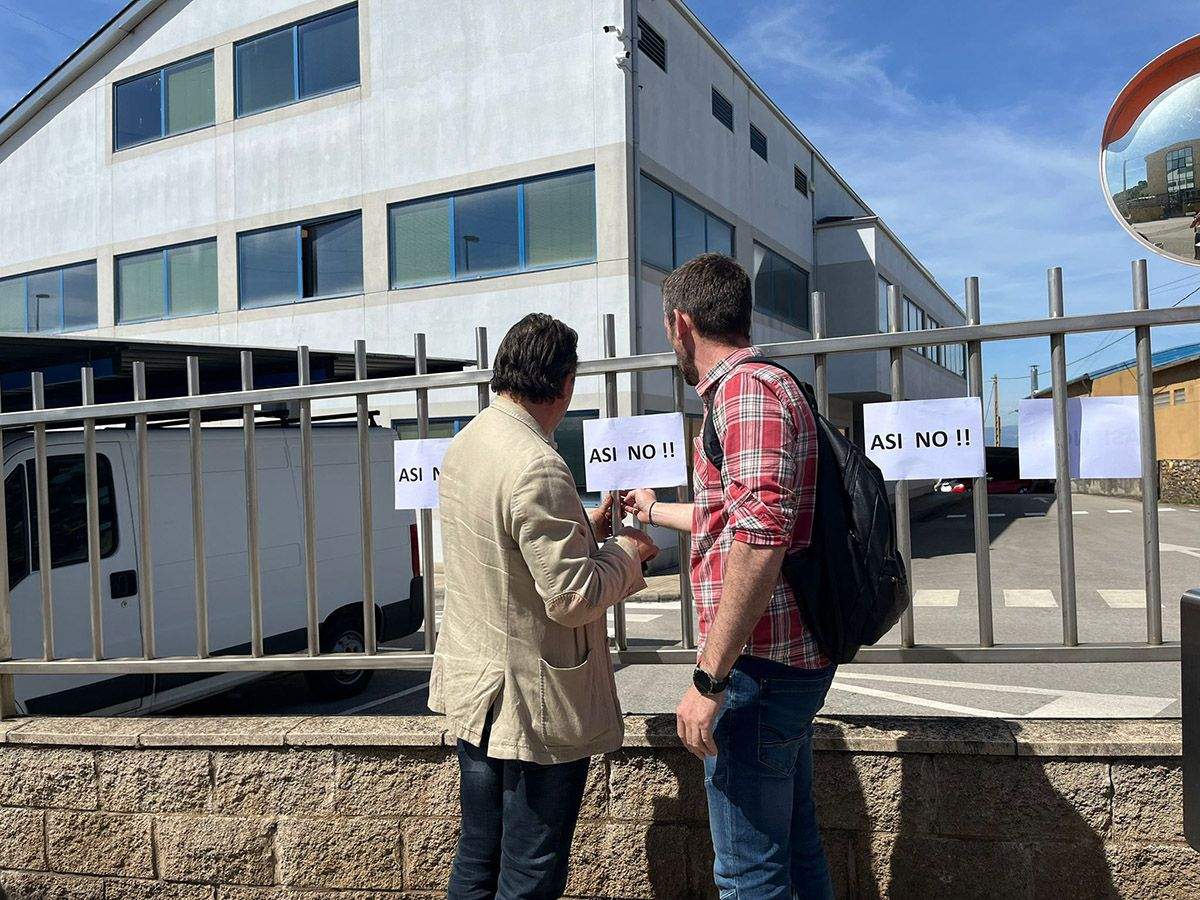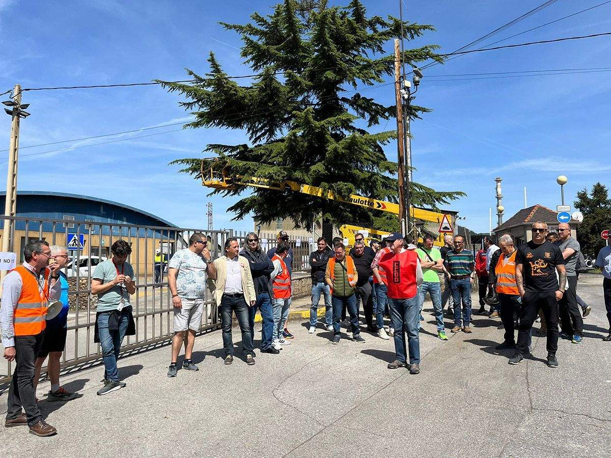 Los trabajadores reunidos a las puertas de la factoría entonaban críticas ante la gestión de "los jefes" y aseguraban que "no nos van a amedrentar con un despido".