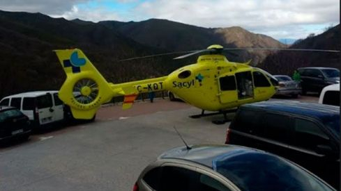El traslado en helicóptero al Hospital El Bierzo de un vecino sorprende a los turistas en Peñalba de Santiago