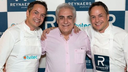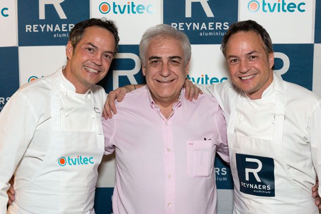 Los hermanos Torres, Javier y Sergio, enfundados en sendos delantales de Tvitec y Reynaers, ejercieron de maestros de ceremonias por sorpresa, puesto que los invitados no estaban advertidos de que compartirían con ellos ni el acto promocional festivo ni la posterior cena. El director general de Tvitec, Javier Prado, y el director comercial de la compañía, Alberto Sutil, se mostraron muy complacidos por la capacidad de convocatoria y por la posibilidad de poner de relieve la relevancia que el vidrio de alto rendimiento de la Marca España está adquiriendo en muchos de los proyectos de envolventes y fachadas que coronan los grandes complejos de oficinas, residenciales y de instituciones a escala internacional.