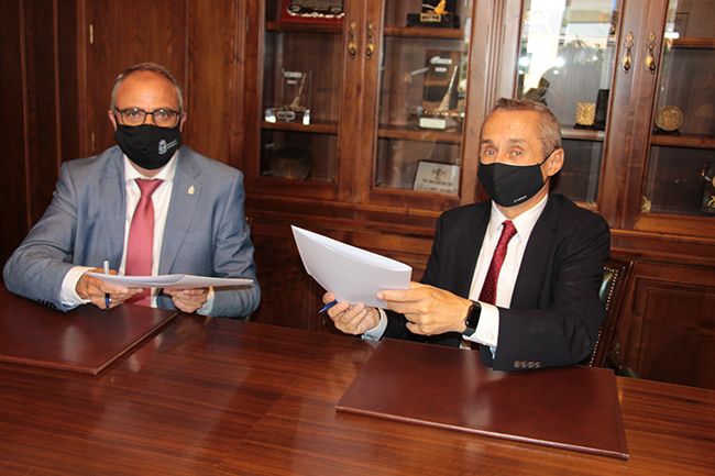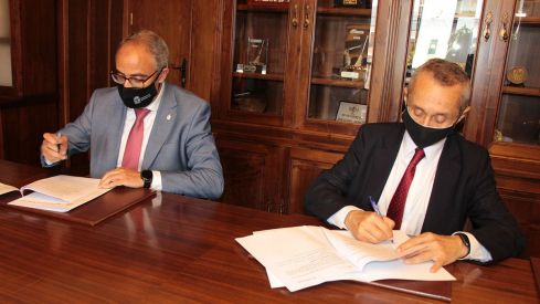 El director general Territorial de Endesa, Miguel Temboury, y el alcalde de Ponferrada, Olegario Ramón Fernández, han suscrito este martes un convenio de colaboración por virtud del cual la compañía eléctrica de origen berciano dona al Ayuntamiento de Ponferrada una finca y el edificio de la antigua biblioteca y salón de actos del Poblado de Compostilla.