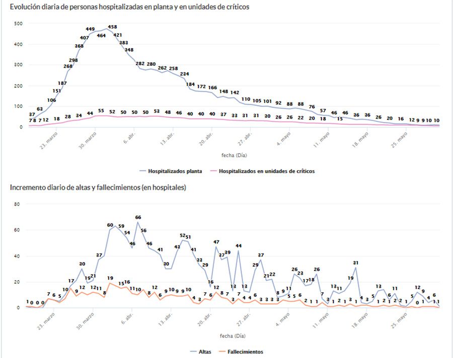 El número de altas y fallecidos registrados desde el inicio de la pandemia se mantiene en 286 y 72, respectivamente