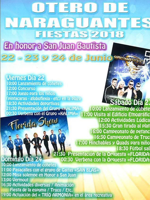 Carracedo comenzará la celebración de la fiesta de San Juan el sábado a las 18.00 horas con juegos populares y a las 21.30 horas paellada popular (3,50€). A las 23.30h empezará el baile con el Dúo Marfull y a las 23.30 horas se procederá al encendido de hoguera. En el descanso habrá sorteos y bingo y a las 2.30 horas continuará la fiesta con Disco Móvil Stu.