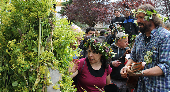 Al final el 'tiempo' se portó bien con los villafranquinos y permitió que este año fueran una docena de maios los que se ataviaran con "as cañaveiras" para recorrer las calles de Villafranca desde diversos puntos hasta encontrarse en la Plaza Mayor.