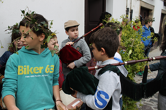 Como ya es habitual, a Escola de Gaitas marcó el paso por Villafranca con la tradicional canción dos maios para reclamar en los balcones de las viviendas, castañas, caramelos o monedas a las "doncellas" y "cabaleiros" o reprender a las "roñosas" o "zampostas".