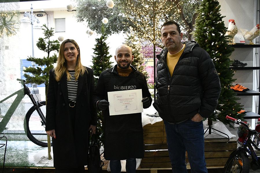 Sandra Romero Patisserie y Bici Bierzo han sido los establecimientos galardonados el Concurso de Escaparates Navideños de Ponferrada. La concejala de Comercio, Juventud y Fiestas del Ayuntamiento de Ponferrada, Lorena Valle, y el vicepresidente de la Cámara de Comercio, Javier Morán, entregaron este jueves los premios a ambas entidades y al que se han presentado un total de 47 establecimientos comerciales de la ciudad.
