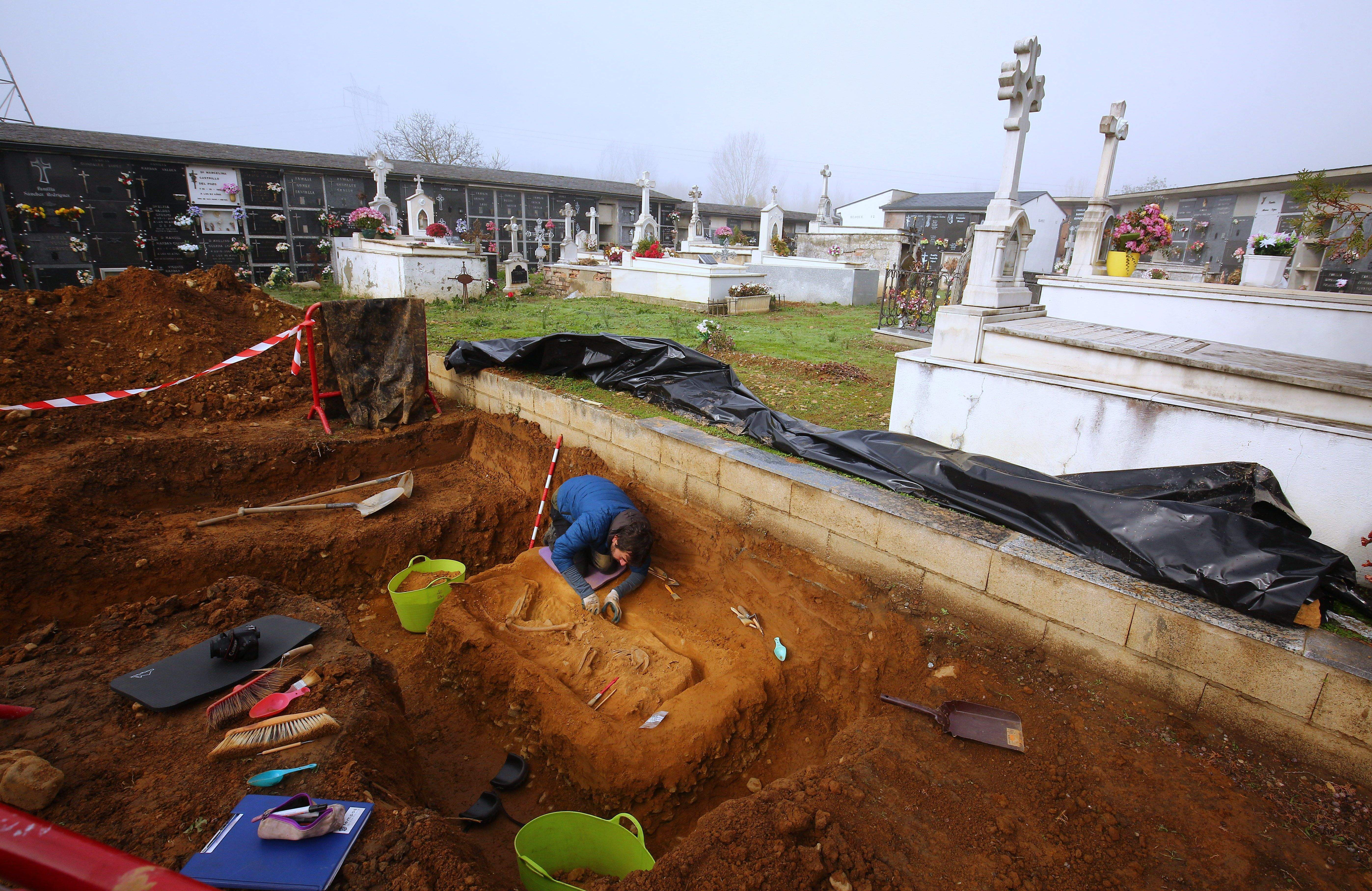 Exhumación de los restos de dos represaliados por el franquismo en el cementerio de Fuentesnuevas en Ponferrada