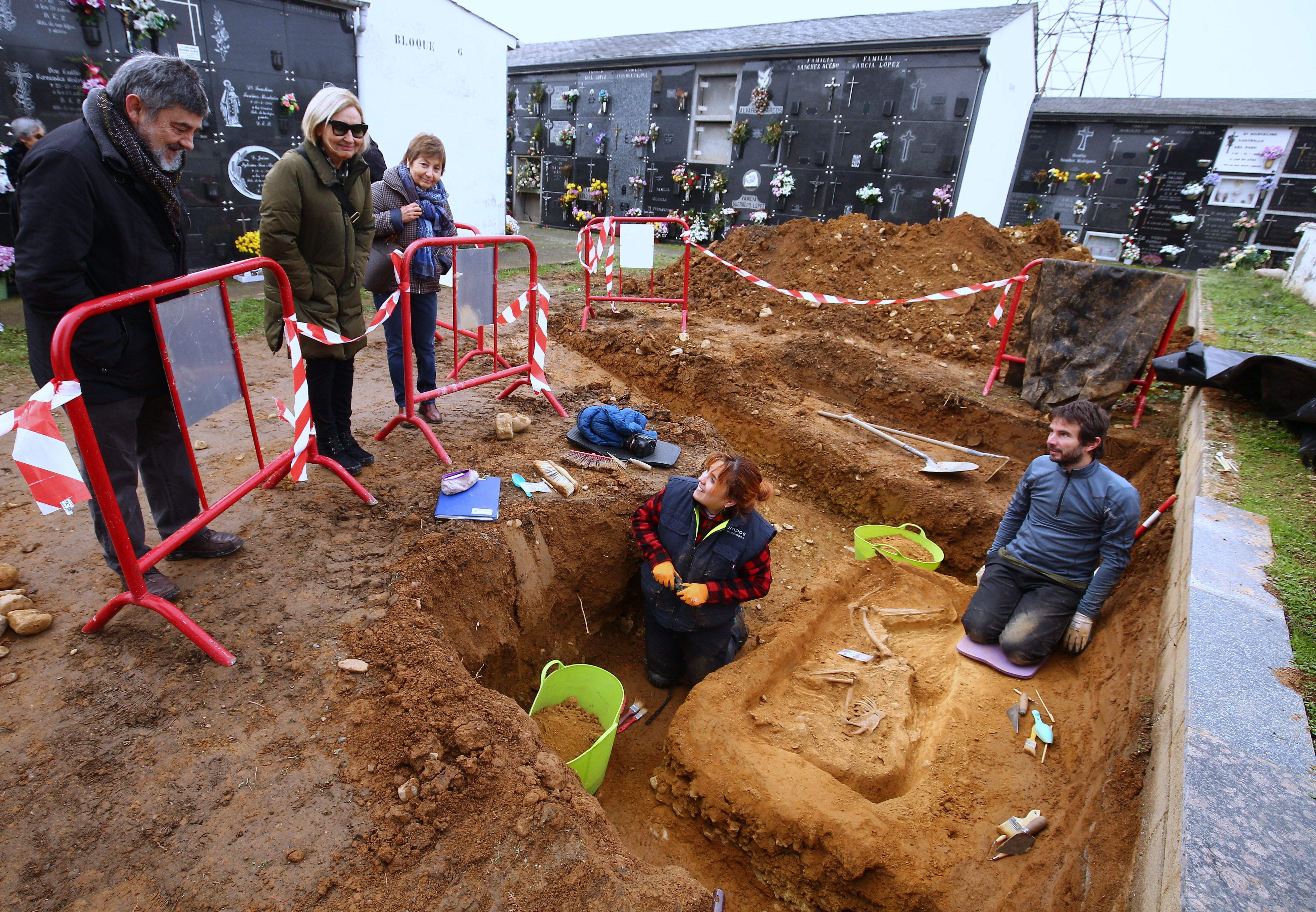 El colectivo Sputnik Labrego exhuma los cuerpos de dos represaliados de la guerra civil en el cementerio de Fuentesnuevas