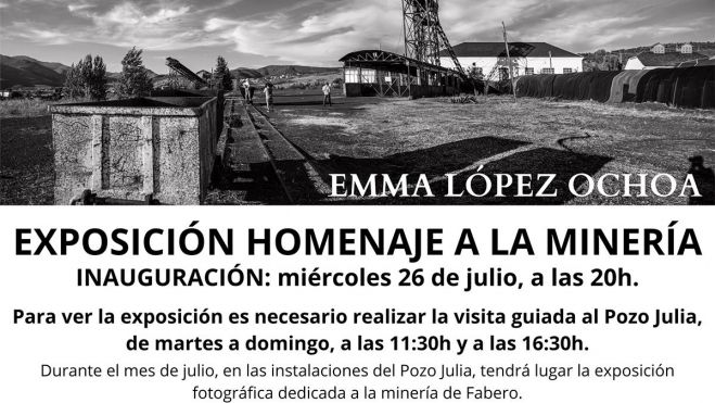 Fabero recuerda una gran parte de su historia a través de una exposición homensaje a la minería del municipio de la mano de su autora, Emma López Ochoa. El encuentro tendrá lugar el miércoles 26 de julio a las 20 horas en las instalaciones del Pozo Julia (Fabero) .