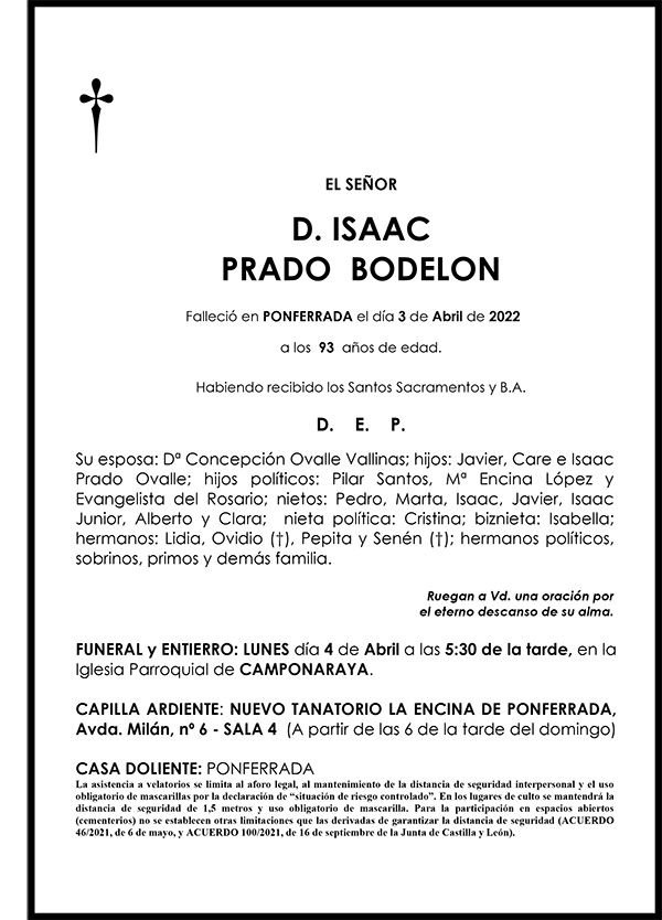 El Bierzo despide este domingo a Isaac Prado, impulsor industrial del Bierzo y padre del fundador del Tvitec, Javier Prado.