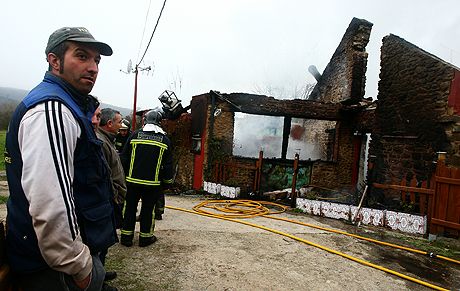 Imagen de la casa calcinada (Fotos César Sánchez)Los bomberos de Ponferrada actuaron durante más de 5 horas para sofocar el incendio declarado sobre las 7,15h. en una vivienda del pueblo de San Justo de Cabanillas, en el municipio de Noceda. De entre los escombros han recuperado ya el cuerpo del vecino que quedó atrapado en su interior, L.G.C de 68 años de edad.