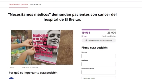 El colectivo que nacía como consecuencia de la falta de profesionales de Oncología en el Hospital del Bierzo ha llevado su petición a la plataforma y supera ya las 25.000 firmas