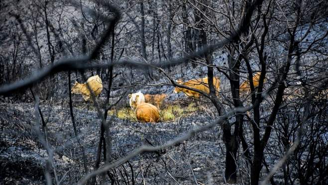 Allí, donde la tradición, el patrimonio y la naturaleza se entrelazan, se levanta ahora un escenario de contrastes. Desde el mirador del Alto de la Cruz, inaugurado en 2024 como nueva puerta de entrada a la Tebaida, la vista es cambiante: entre el gris de la ceniza emergen ya tímidos brotes verdes, mientras la fauna silvestre empieza a recuperar su espacio. Los animales se abren paso en silencio sobre un suelo marcado por la devastación que han sustituido los verdes pastos por ceniza incrustada.