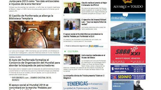 CAMBIO DESDE LA CABECERA: Deja de ser un sello de marca para convertirse en un primer bloque de contenido que contextualiza el medio local en información general, tanto nacional como internacional. Además, una zona sirve de tablón de anuncios para próximos directos, entrevistas, etc. Se ubica junto al 'logo' un módulo para que los redactores compartan con el lector ciertas informaciones propuestas, desde lo local a lo que es noticia fuera de la Comarca. Este módulo puede habilitarse en momentos espaciales para recopilar hashtag de modo que da cabida a las comentarios de los lectores desde el primer impacto informativo del diario.