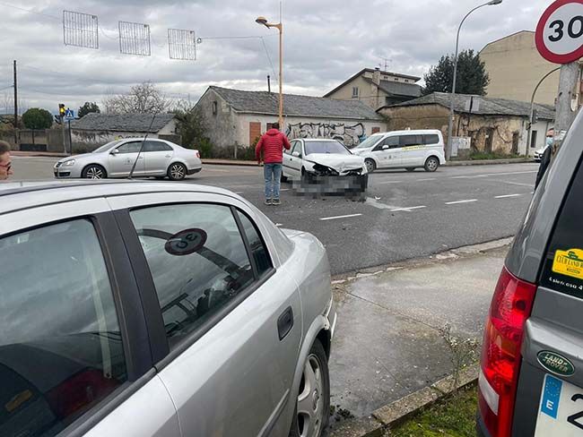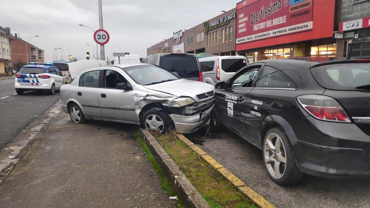 Una mujer ha resultado herido en una colisión lateral entre dos turismos en la Avenida de Galicia y el cruce con Antonio Cortés en la capital berciana. Aunque se trata de un suceso "leve" hasta el lugar se ha desplazado la Policía Local de Ponferrada, así como la asistencia necesaria para atender a la mujer de unos 36 años.