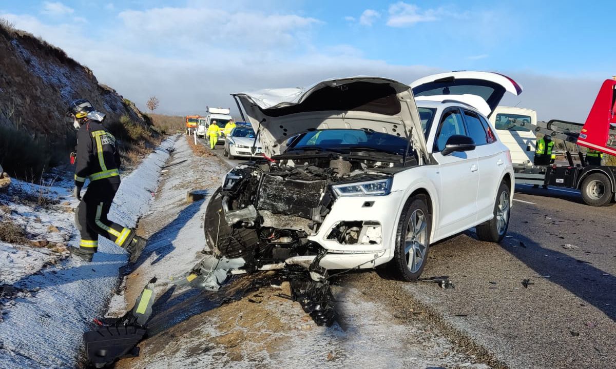 Una colisión entre tres turismos, en el kilómetro 338 de la autovía A-6, a la altura de Combarros, ha supuesto que 4 personas hayan quedado heridas, de las que una de ellas quedaraq "atrapada en el turismo en el que viaja", según las informaciones emitidas por el Servicio de Emergencias 112 de Castilla y León.