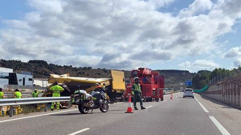 Además, han acudido varias furgonetas de la compañía de mensajería para recuperar la carga derramada.