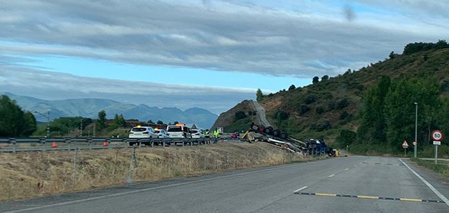 Alicia Rivera / InfoBierzoUn hombre de 58 años resultó este jueves herido de gravedad después de que el camión que conducía sufriera un vuelco a la altura de Bembibre, lo que obligó a su traslado en una UVI móvil al Hospital del Bierzo.