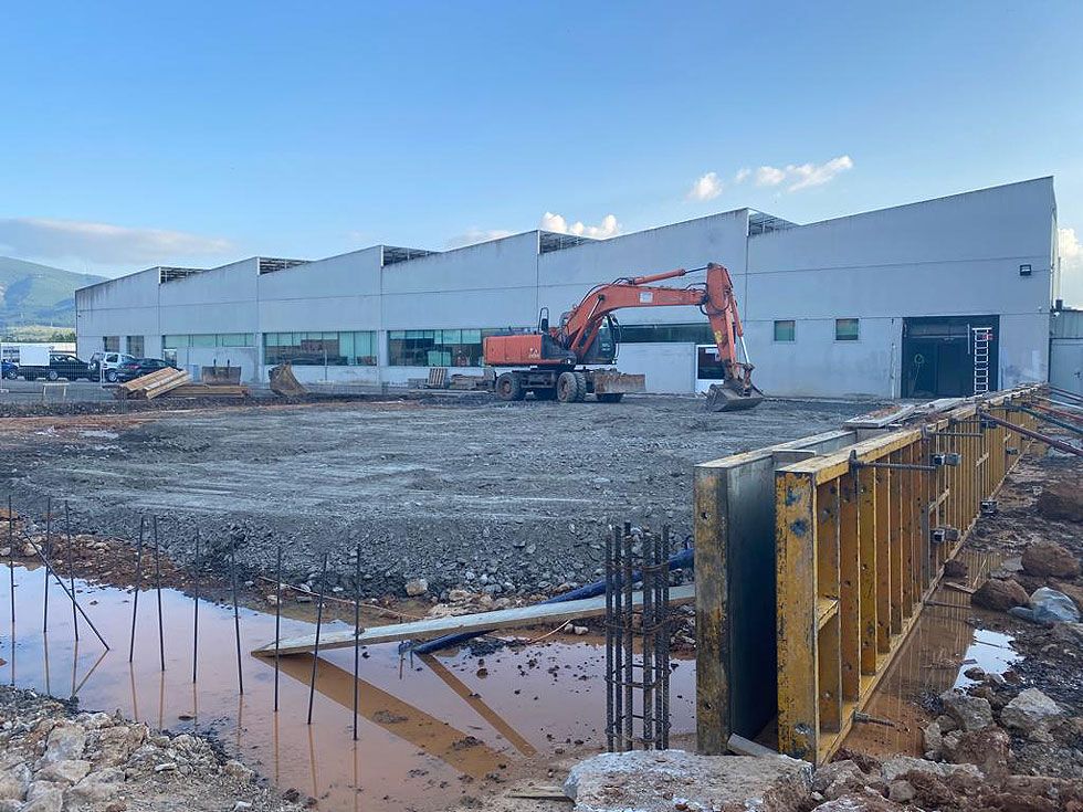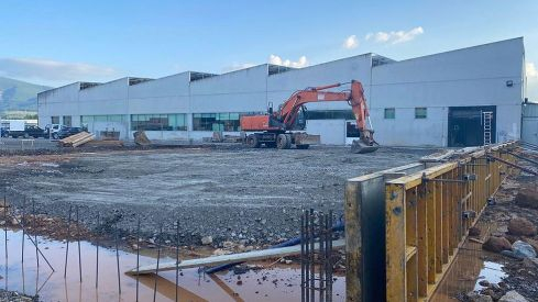 Las máquinas trabajan ya sobre el terreno para preparar la parcela en el Polígono Industrial de San Román de Bembibre. Las obras de construcción de la nave de 600 m2 sobre el solar de 1.700 estarán listas a mediados de agosto y en otoño la nueva factoría estará en disposición de fabricar 2 millones de batas EPI para sanitarios.