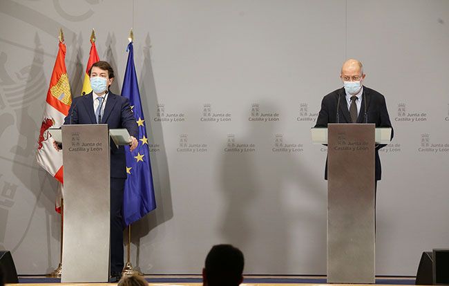 El presidente de la Junta de Castilla y León, Alfonso Fernández Mañueco, y el vicepresidente, portavoz y consejero de Transparencia, Ordenación del Territorio y Acción Exterior, Francisco Igea, ofrecen una rueda de prensa (Fotos: Rubén Cacho / ICAL)El presidente de la Junta de Castilla y León, Alfonso Fernández Mañueco (PP), y el vicepresidente, Francisco Igea (Cs), han comparecido este jueves para abordar su postura frente a la moción de censura presentada ayer por el PSOE en las Cortes con Luis Tudanca al frente.