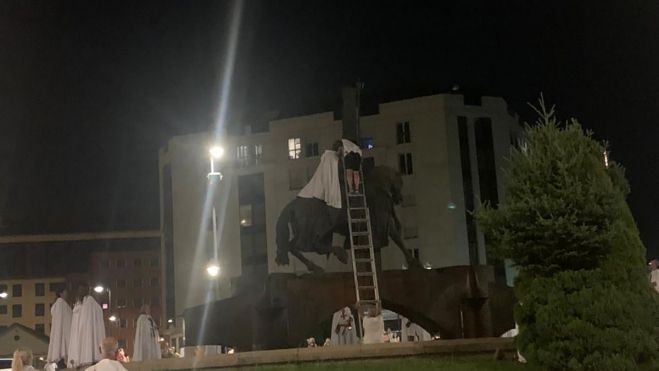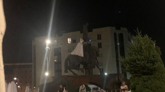 La imposición de la capa al caballero en la Glorieta del Temple por parte de la asociación Bergidum Templi ha inaugurado este sábado las celebraciones de la Noche Templaria en Ponferrada.
