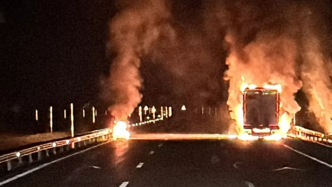 El servicio de emergencias del 112 de Castilla y León recibía un aviso por un camión que ardía en la A-6 a la altura de Brazuelo dirección A Coruña en torno a las 3:04 horas.