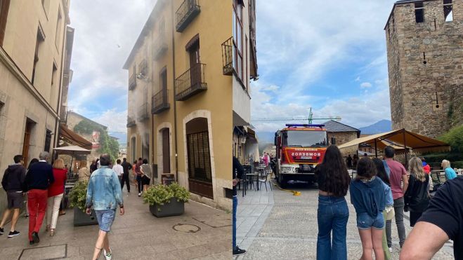 La escena irrumpió en el corazón del casco antiguo ante el paseo de viandantes y turistas. El humo salía por la fachada del restaurante apostado frente al Castillo, y se extendía hacia el exterior, poniendo sobre alerta a los presentes sobre las 19.30h. de este sábado.