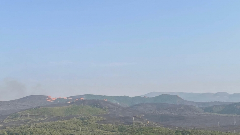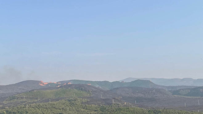 Desde el mirador del Lago de Carucedo, la imagen es desoladora: un manto de ceniza cubre gran parte del paisaje, interrumpido por lenguas de fuego que todavía mantienen viva la amenaza. El entorno de Las Médulas, Patrimonio de la Humanidad, muestra sus laderas rojas ennegrecidas, con columnas de humo que se elevan sobre las zonas más castigadas.