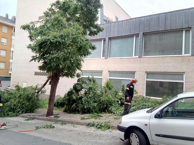 La tormenta y las fuertes rachas de viento del pasado miércoles provocaron varios incidentes que motivaron la intervención de los Bomberos de Poferrada. Rotura de ramas de árboles, retiradas de objetos por caídas de fachadas y tejados de inmuebles o un incendio de varias pacas de paja almacenadas en una finca en Camponaraya, fueron algunas de las alarmas recibidas.