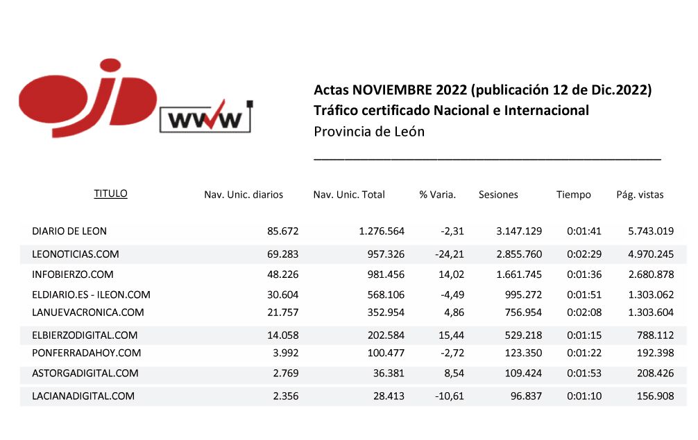 De esta forma InfoBierzo triplica al segundo competidor digital en El Bierzo en todos los parámetros sometidos a certificación por la auditoría OJD.