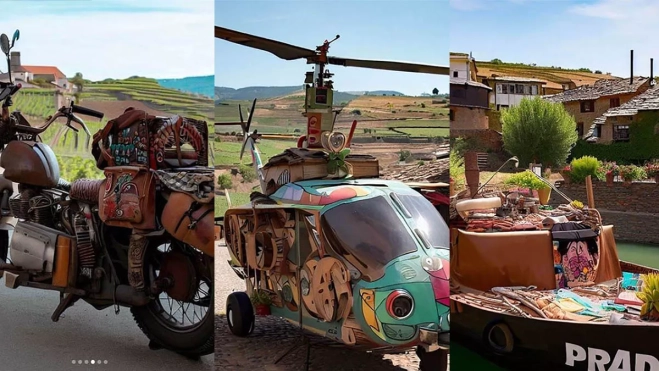 La cuenta de inteligencia artificial 'ponferrad.ia' vuelve a sorprender con una nueva creación a base de imaginación, se trata "una flota de vehículos de Prada a Tope" entre los que podemos encontrar "una limusina, un helicóptero monoplaza, un barco y una motocicleta, todos ellos con su estilo único y colorido".