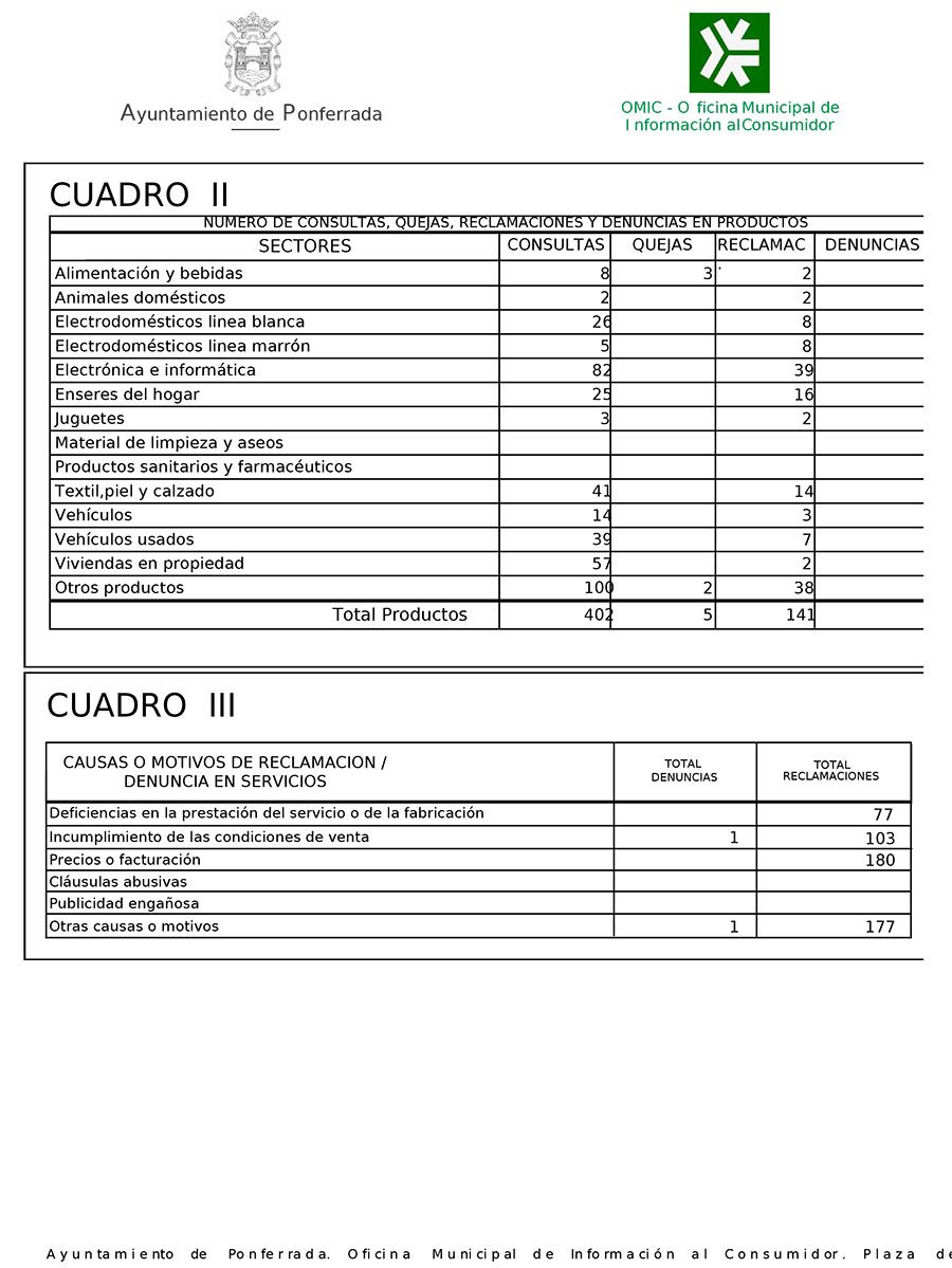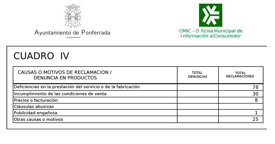 Por lo que respecta a los productos, se presentaron un total de 141 reclamaciones, con deficiencias en la fabricación como motivo principal. Del total, ocho se hicieron llegar a otros organismos mientras que una se tramitó a través de la Junta Arbitral de Consumo. Las consultas en este apartado ascendieron a 402, con la electrónica e informática como el sector más presente. También se presentaron cinco quejas formales, relacionadas con la propiedad inmobiliaria y con el sector de la alimentación y las bebidas.
