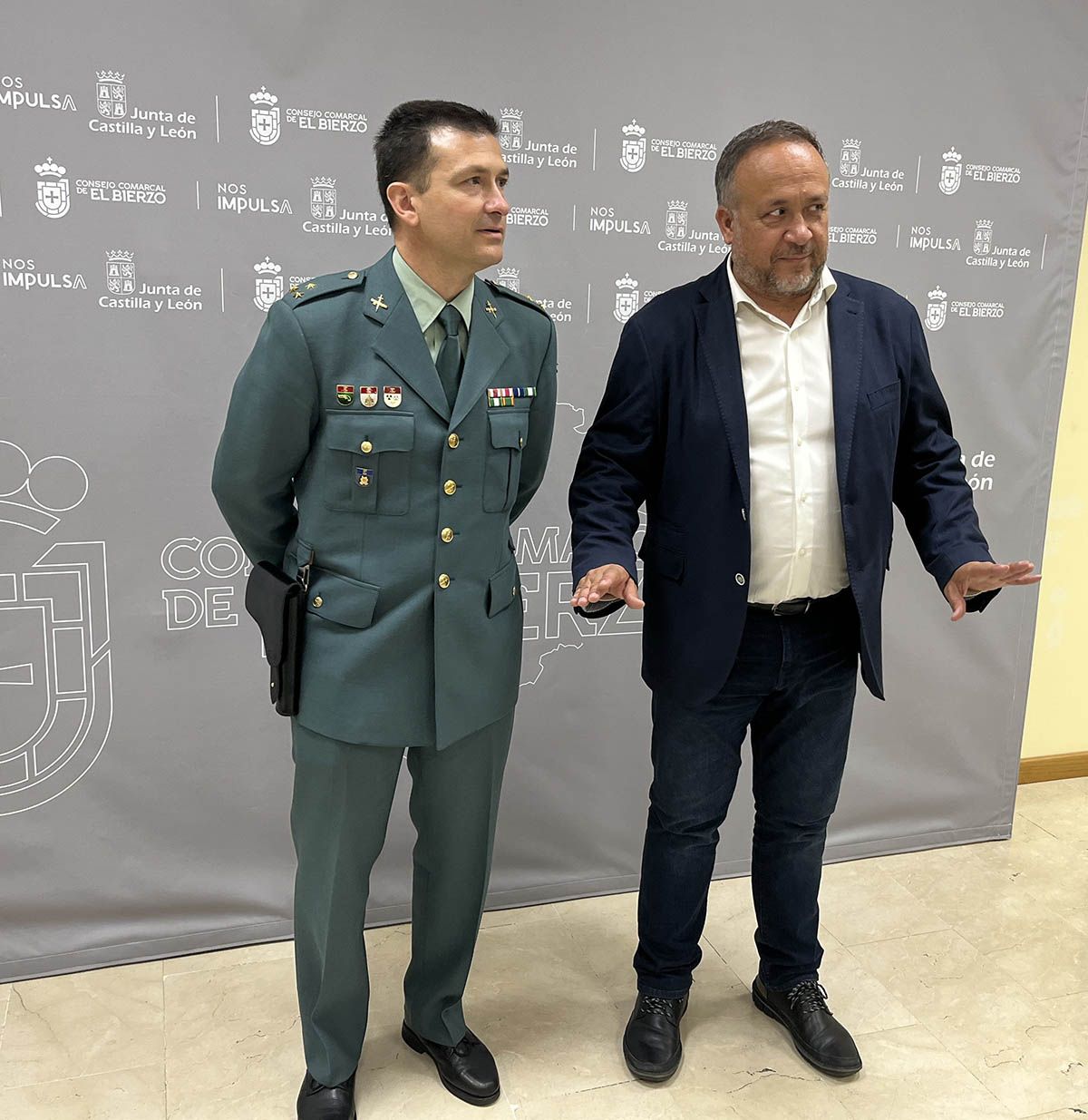 El presidente del Consejo Comarcal del Bierzo, Gerardo Álvarez Courel (D), recibe al capitán de la Guardia Civil en Ponferrada, Juan Jesús Cadenas (I)Tras su ascenso a capitán, Cadenas obtuvo destino en Villablino y ahora se reincorpora a Ponferrada, ciudad de la que ya conoce sus principales problemas de seguridad. En ese sentido, el responsable del Instituto Armado en la ciudad señaló que el número de delitos se mantiene, aunque existe un “trasvase de tipología delictiva”, hacia nuevos ilícitos cometidos a través de las redes.