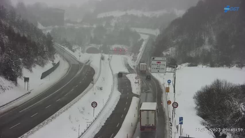 Foto: Cámara DGT PiedrafitaAsimismo, en las conexiones del Bierzo con Galicia también se ven afectadas por la climatología. Cortada totalmente está la LE-723 desde Amasmestas (Vega de Valcarce) al km 13 en CAastañeiras (León) en ambos sentidos, La carretera LU-P-4705 desde el km 0 en Arribas (Lugo) al km 1 en Nogueiras (Lugo) en ambos sentidos y la LU-P-5004 está cortada totalmente a la altura de Vieiros (Lugo) desde el km 10.5 al km 10.6 en ambos sentidos. La DGT pide extremar la precaución en la A-6 desde el km 432 en Pedrafita (Lugo) al km 438 en Noceda (Lugo) por "condiciones dificiles de circulación".