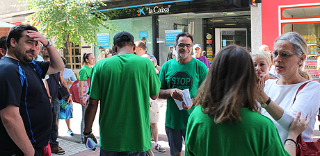 Instantes antes de la acción de Stop Desahucios ante la entidad de La Caixa ubicada en la calle Villafranca, los directores del banco trasladaban a la familia su propuesta de solución pactada.