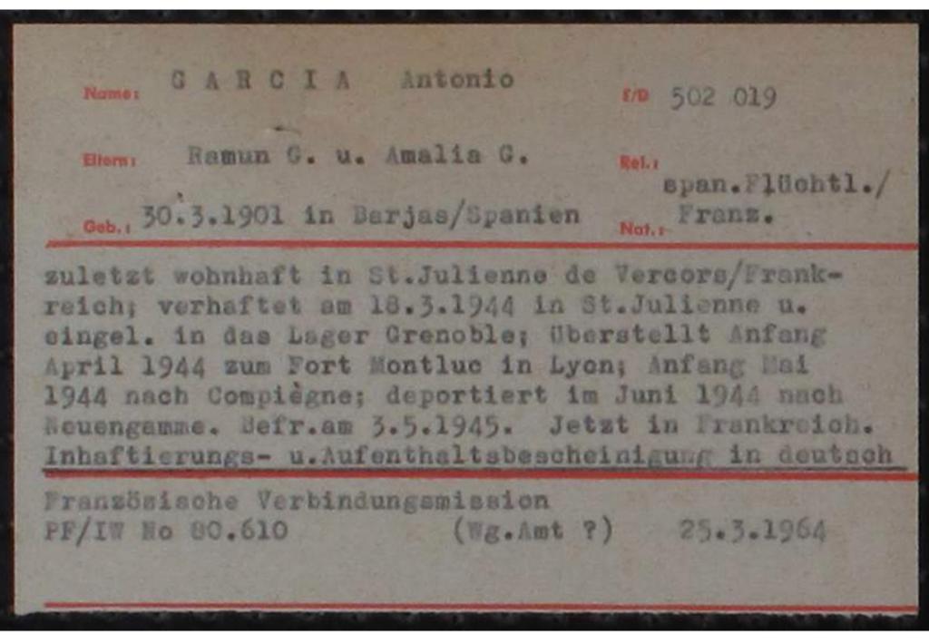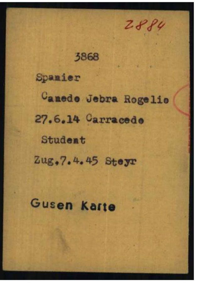Nacido en 1914 en Carracedo (León), estudiante, exiliado a Francia. Internado en Sandbostel y deportado a Mauthausen el 3 de abril de 1941, con número de prisionero 3868. Liberado el 5 de mayo de 1945 y repatriado a Strasbourg (Francia) en agosto del mismo año.