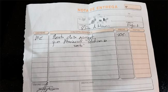 Foto: Recibo falso dado a un establecimiento de Ponferrada para justificar el patrocinio del evento / Cedida a InfoBierzo