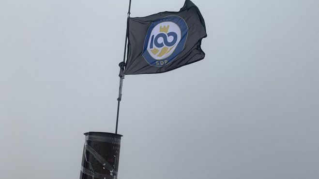 Un gesto que habla por si solo. La bandera centenaria, que honra los 100 años de victorias, luchas, goles, derrotas pero sobre todo ilusión y ganas de la Sociedad Deportiva Ponferradina, ya ondea fuerte. Además, cabe destacar que hace 3 días la Deportiva hacía oficial su Himno del Centenario, resultando como ganador la composición musical de Pachi Pérez y Jorge Majo, recientemente fallecido, al que Pérez dedica este premio, según sus palabras en redes sociales.