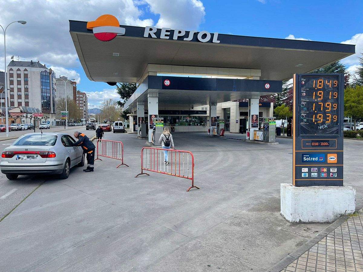Un problema en el sistema informático de la compañía Repsol está ocasionando este viernes la parada de actividad algunas de sus gasolineras en todo el país, y algunas de esllas en El Bierzo. Una imagen que se hace palpable en la céntrica Repsol de Ponferrada (avenida de Ll Libertad), justamente el mismo día que las estaciones de servicio deben comenzar a aplicar los descuentos de 20 céntimos por litro en todos sus clientes.