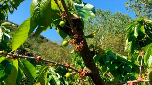 El tiempo ha "vuelto loco" al árbol. Y es que la climatología ha llevado incluso a que se hayan registrado varias floraciones, con momentos distintos de flor y cuajado en el mismo árbol. "Ahora la cereza está verde, en tamaño aceituna", apunta el director técnica, que insiste en que hay que esperar a ver cómo evoluciona el tiempo para evaluar y cuantificar cuanto afectará a la producción de la campaña de Cereza del Bierzo.